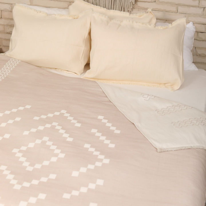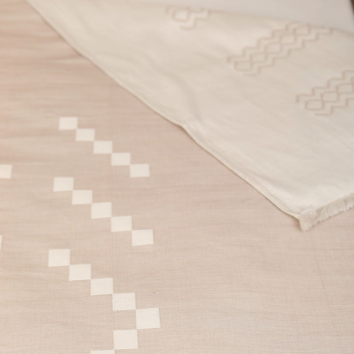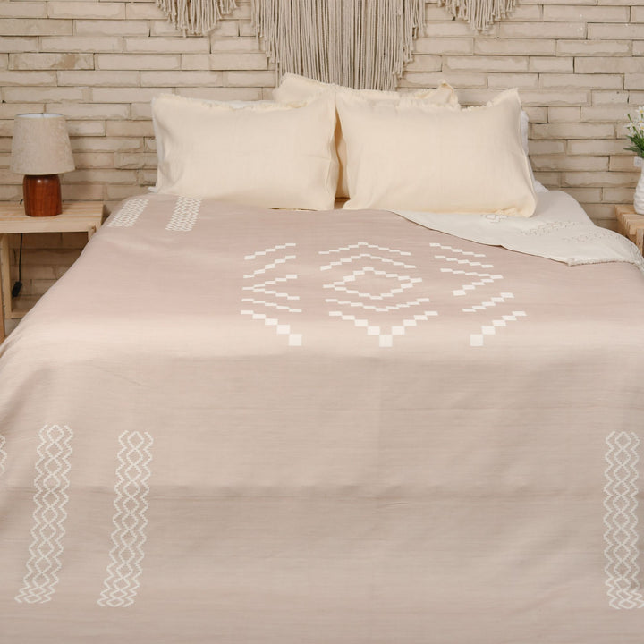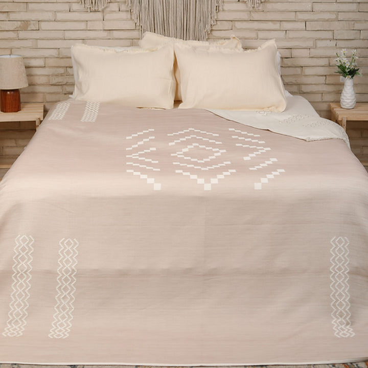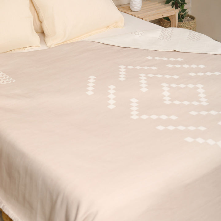 صُنعت كوفرتة منسوج على الأنوال الخشبية بتقنيات متوارثة عبر العصور و بأنامل تنقل الدفء والحب و تمزجه،