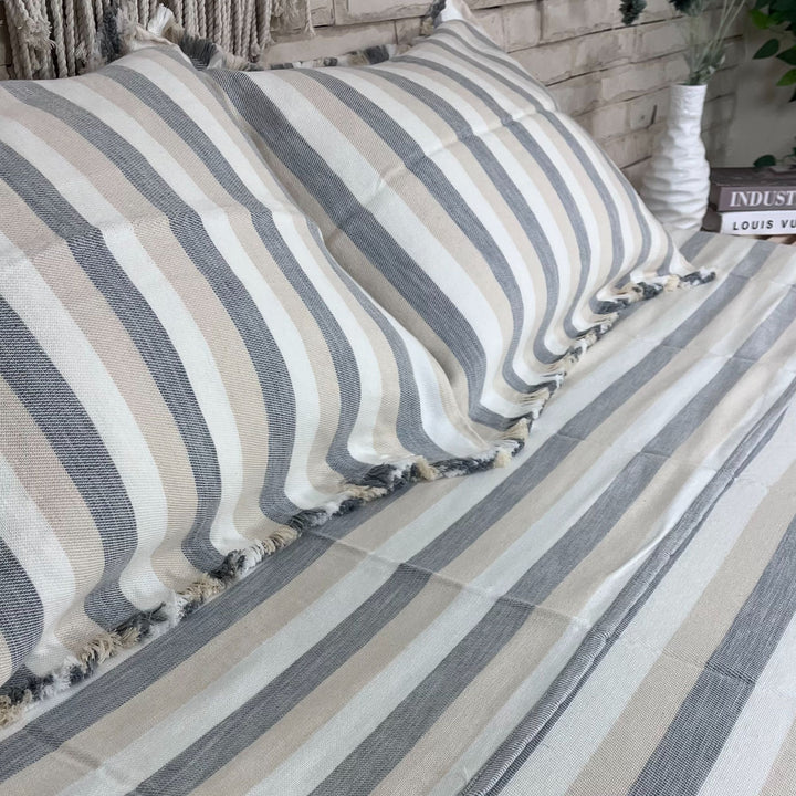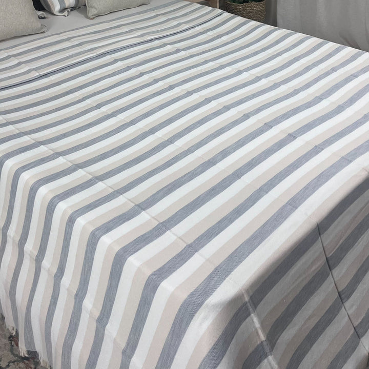 صُنعت كوفرتة منسوج على الأنوال الخشبية بتقنيات متوارثة عبر العصور و بأنامل تنقل الدفء والحب و تمزجه،