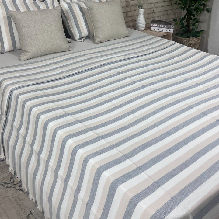 استخدم الكوفرتة وحدها خلال فصلي الربيع والصيف للاستمتاع بخفتها وتهويتها المثالية، أو استخدمها كطبقة إضافية مع اللحاف في الخريف والشتاء للتدفئة والأناقة.