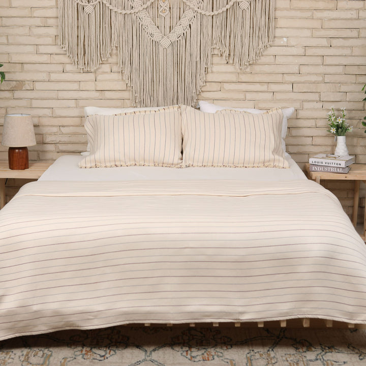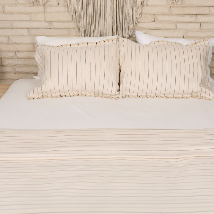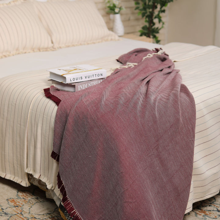 صُنعت كوفرتة منسوج على الأنوال الخشبية بتقنيات متوارثة عبر العصور و بأنامل تنقل الدفء والحب و تمزجه،