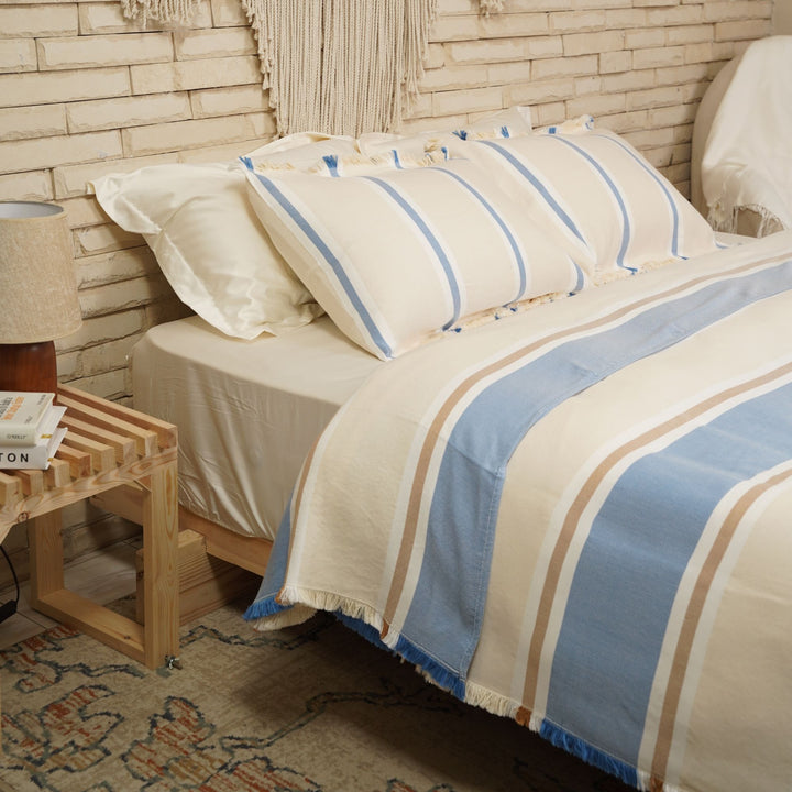 Handwoven in Egypt: Every coverlet is woven on traditional wooden looms by skilled artisans in Akhmim, preserving centuries of textile heritage.