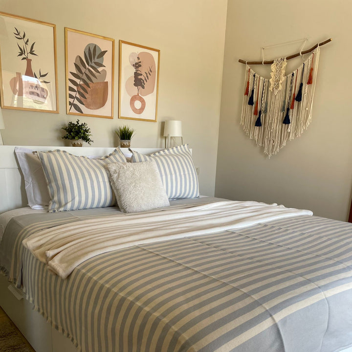 استخدم الكوفرتة وحدها خلال فصلي الربيع والصيف للاستمتاع بخفتها وتهويتها المثالية، أو استخدمها كطبقة إضافية مع اللحاف في الخريف والشتاء للتدفئة والأناقة.